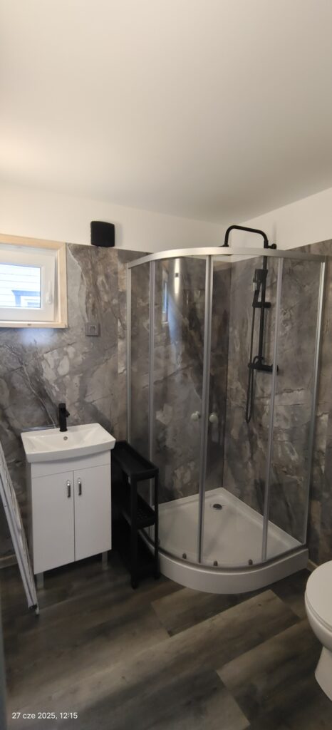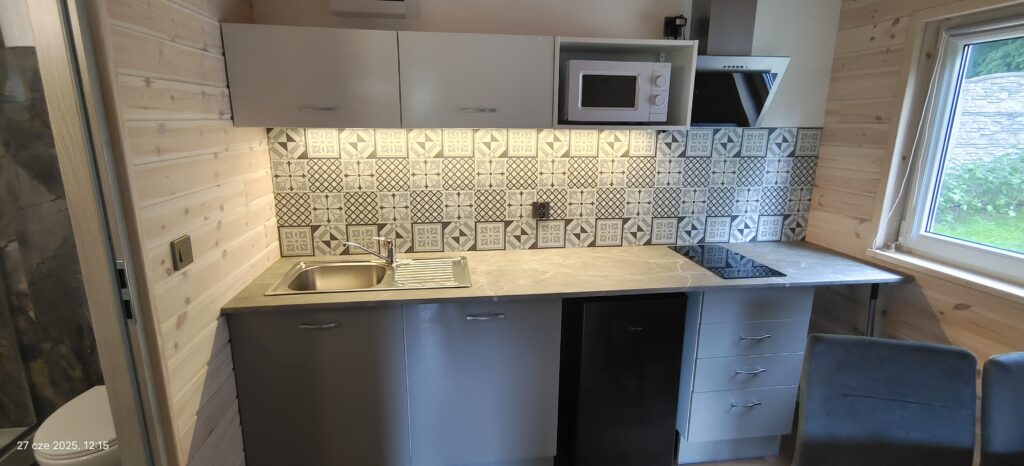 - każdy domek ma aneks kuchenny i łazienkę, Wi-Fi i Smart TV